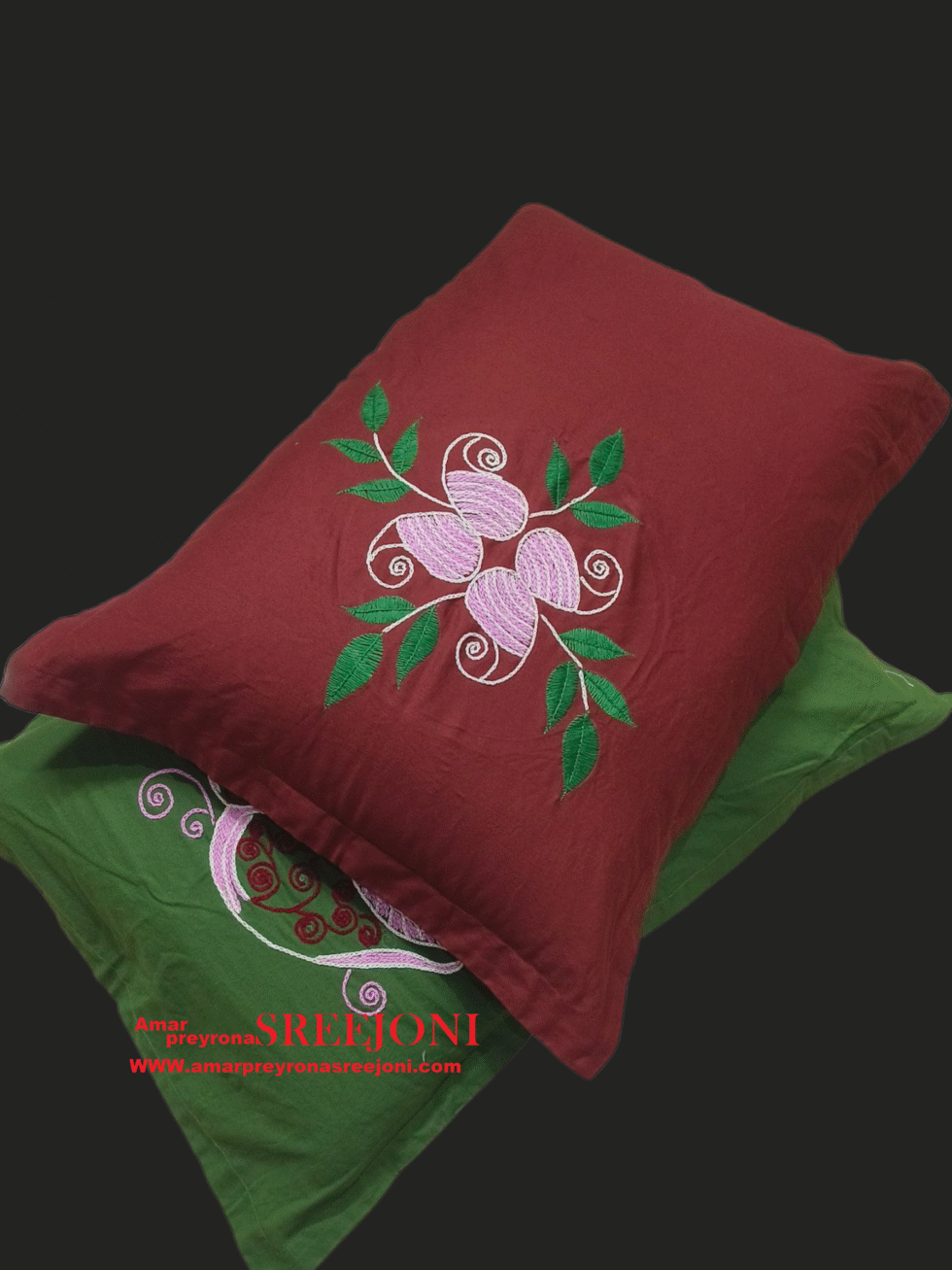 Enhance your bedroom décor with this Hand Embroidered Pure Cotton King Size Double Bed Sheet in a beautiful maroon, white, and green color combination. Crafted from premium quality cotton, it offers a soft, breathable, and comfortable feel for everyday use. The intricate hand embroidery adds a touch of traditional artistry, making it a perfect blend of elegance and comfort. Comes with two matching pillow covers to complete the coordinated look.