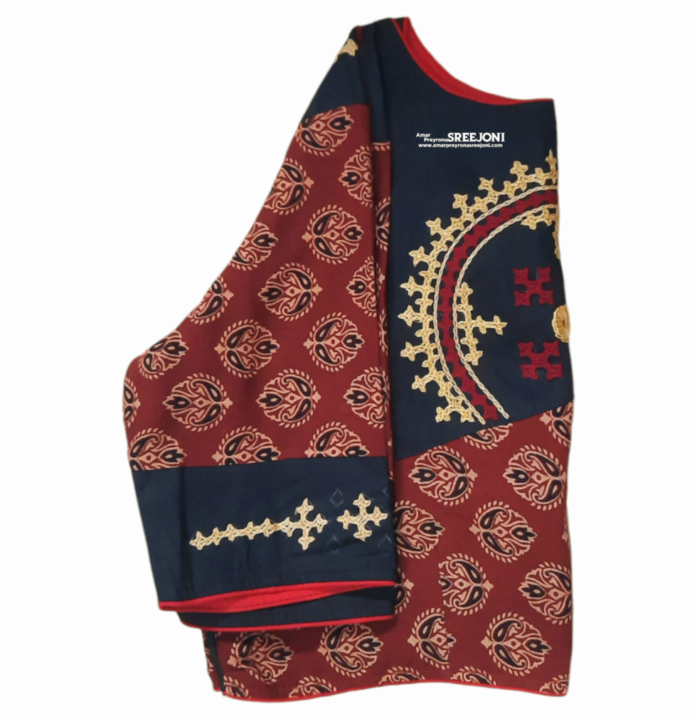 Elevate your wardrobe with this exquisite Hand Embroidery Blouse crafted from pure cotton for unmatched comfort and style. The blouse features a stunning combination of black and maroon, giving it a rich, elegant appearance perfect for any occasion. Handcrafted by skilled artisans, the intricate embroidery adds a touch of traditional craftsmanship, making each piece truly unique.