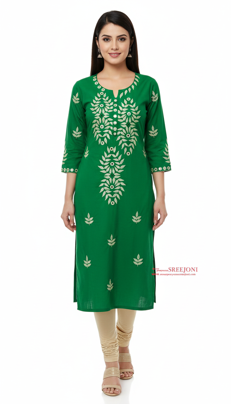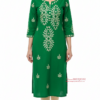 Hand Embroidery Pure Cotton Green Color Kurti Piece For Women And Girls Clothes 3 miter